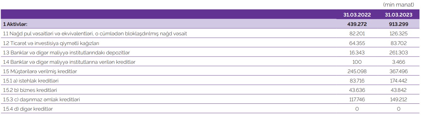O cümlədən, Bankın istehlak kreditləri portfeli 90 milyon 726 min manat artaraq 174 milyon 442 min manata, biznes kreditləri portfeli 206 min manat artaraq 43 milyon 842 min manata, ipoteka kreditləri portfeli isə 31 milyon 466 min manat artaraq 149 milyon 212 min manata çatıb.