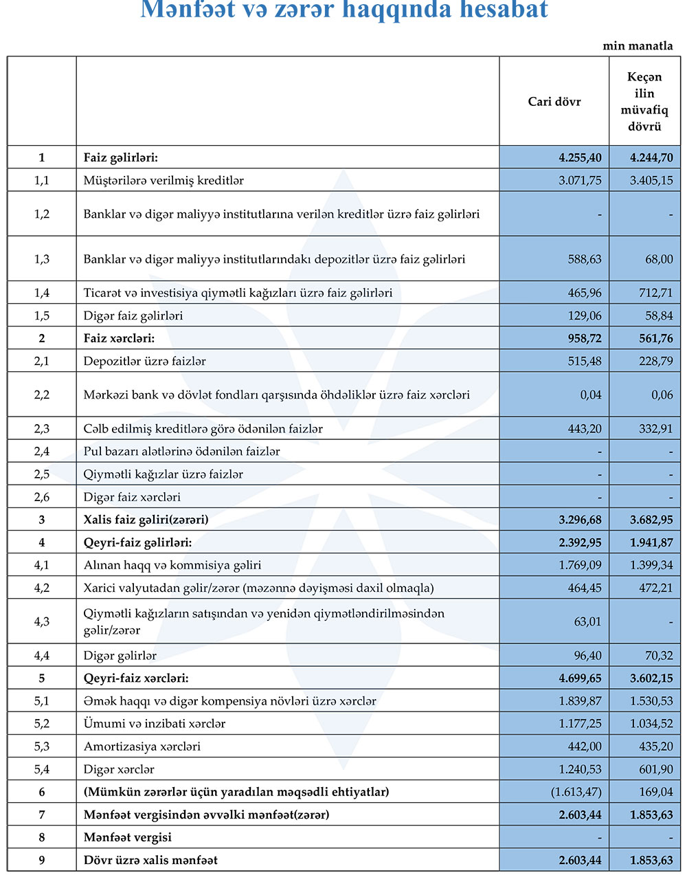 "AFB Bank" maliyyə vəziyyətini açıqlayıb