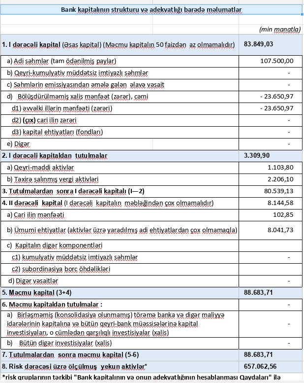 Ötən ilin analoji dövrü ilə müqayisədə Bankın cəmi aktivləri əhəmiyyətli dərəcədə olmaqla, 11,65% artımla 739,82 milyon manat təşkil edib. bankın cəmi depozit portfelində də 31,51% artım qeydə alınaraq 428,02 milyon manata çatıb.