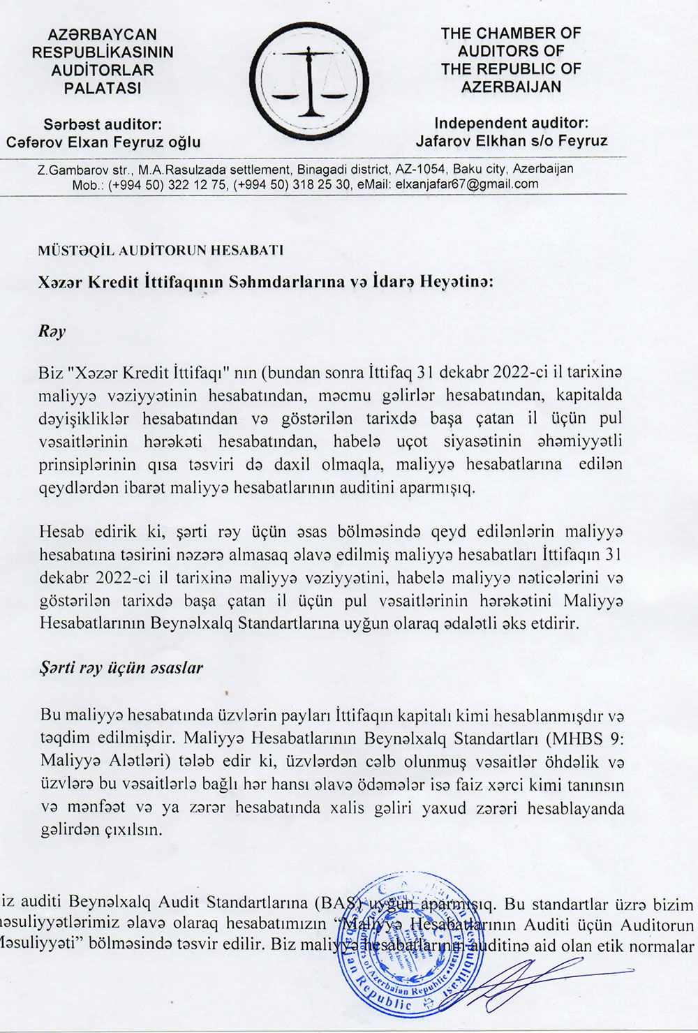 "Xəzər Kredit İttifaqı"nın 2022-ci ilin yekunları üzrə maliyyə hesabatları