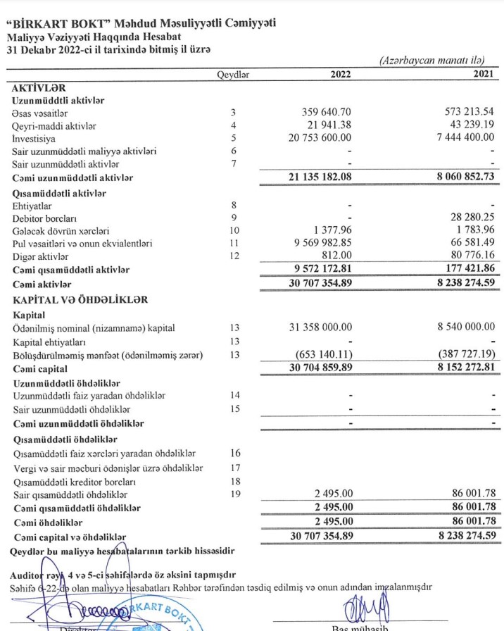 "BirKart BOKT" MMC 2022-ci il üzrə maliyyə göstəricilərini açıqlayıb.