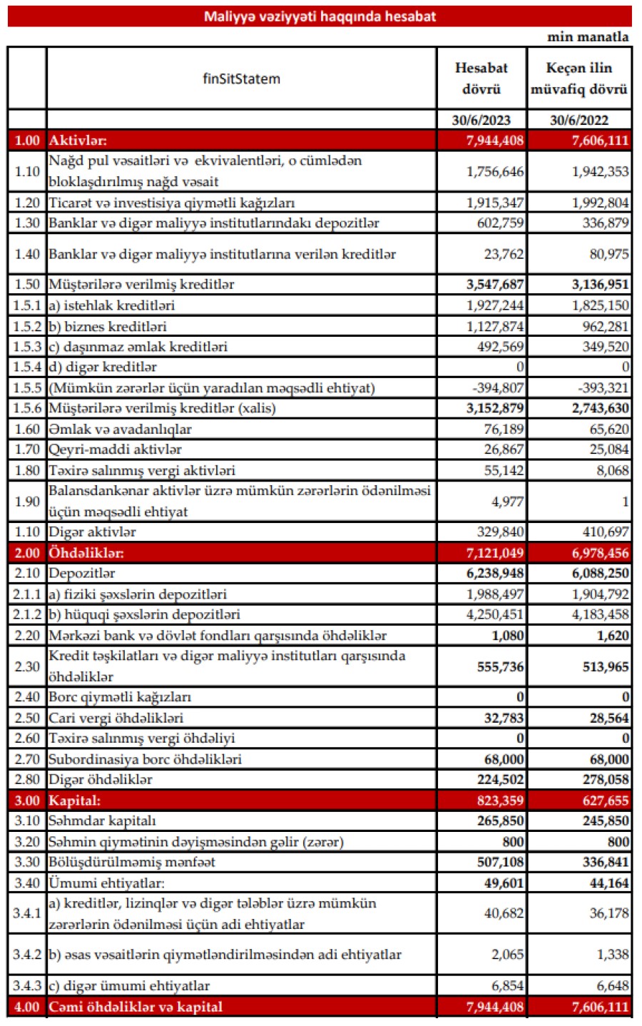 Azərbaycan bankı 147 milyon manata yaxın xalis mənfəət açıqladı