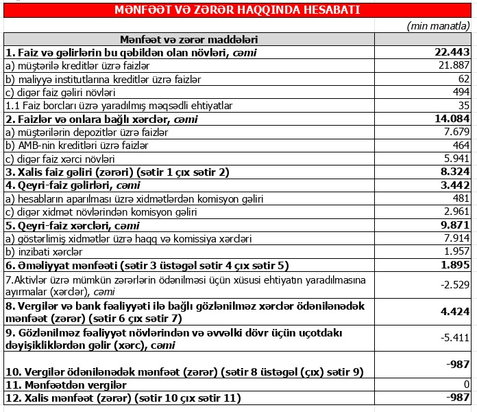 Müqayisə üçün qeyd edək ki, 2022-ci ilin 9 ayı ərzində "Bank BTB"nin əməliyyat mənfəəti 129 min manat təşkil etmişdi və aktivlər üzrə mümkün zərərlərin ödənilməsi üçün xüsusi ehtiyatın yaradılmasına 5 milyon 872 min manat ayırmışdı. Beləliklə, "Bank BTB"nin əməliyyat mənfəəti 2023-cü ilin 9 ayında ötən ilin eyni dğvrü ilə müqayisədə 14,7 dəfə artıb.