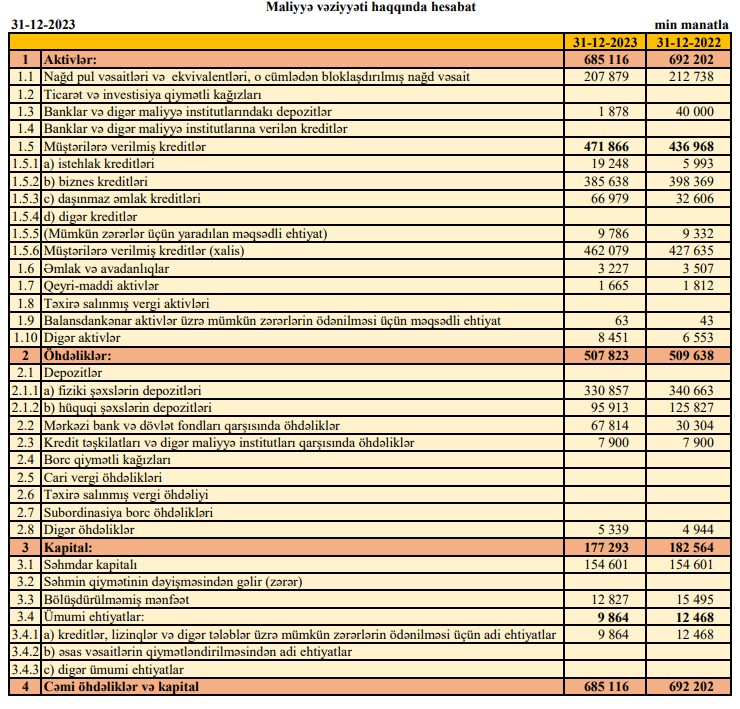 "Premium Bank"ın maliyyə vəziyyəti açıqlanıb