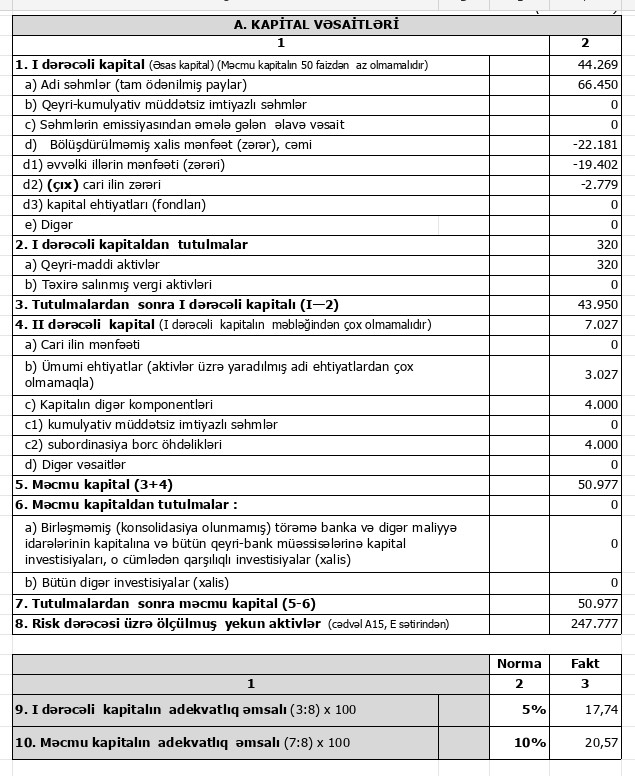 Müqayisə üçün qeyd edək ki, 2022-ci ildə Bank "BTB"nin cəmi əməliyyat gəlirləri 31 milyon 631 min manat, cəmi əməliyyat xərcləri 31 milyon 189 min manat, gəlirlər xərcləri üstələdiyindən əməliyyat mənfəəti 442 min manat təşkil etmişdi.