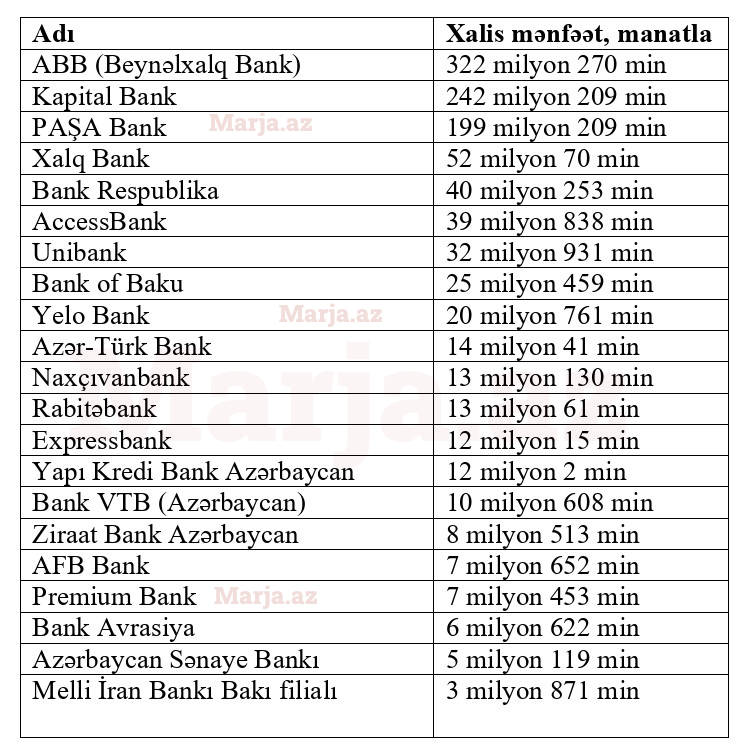 2023-cü ili xalis mənfəət ilə başa vuran banklar - SİYAHI, MƏBLƏĞLƏR