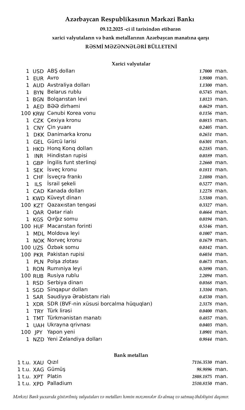 Dolların sabah üçün rəsmi məzənnəsi müəyyən olunub