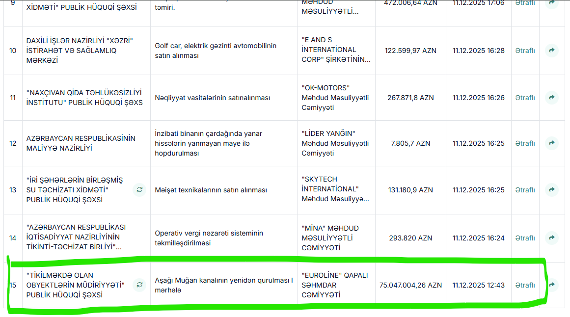 Marja.az xəbər verir ki, tenderin qalibi "EUROLİNE" QSC-dir.