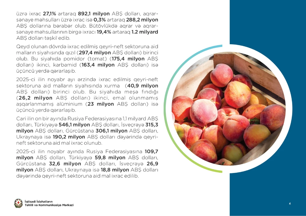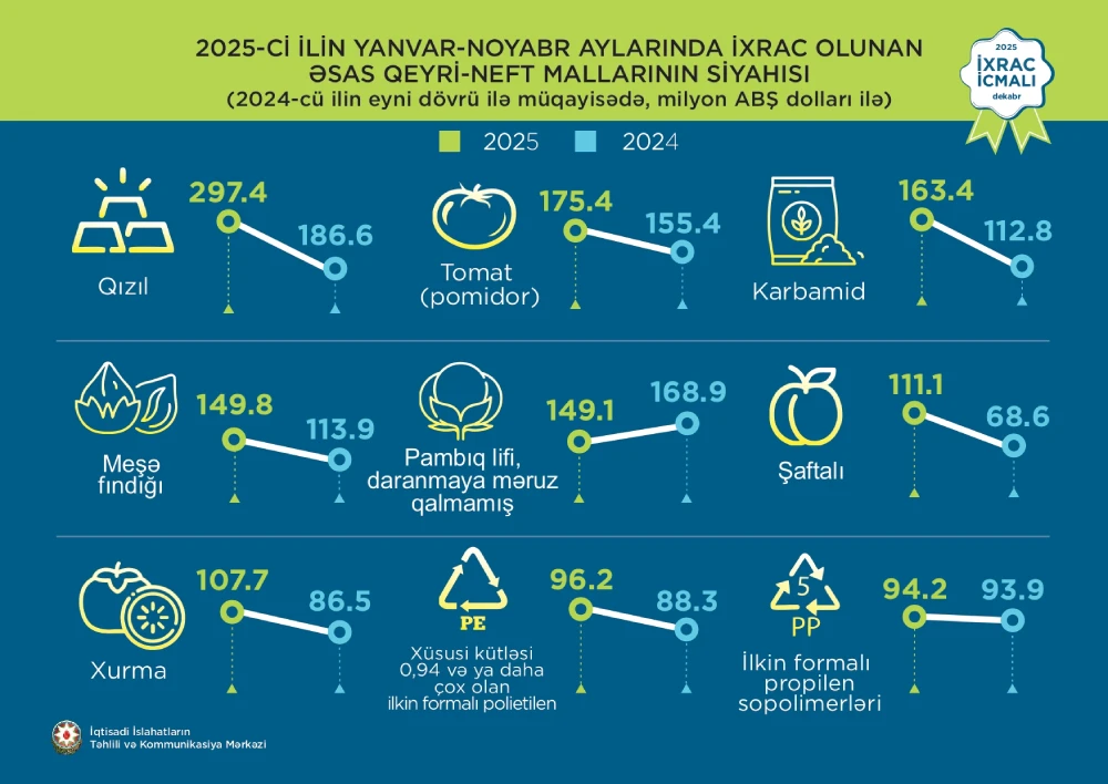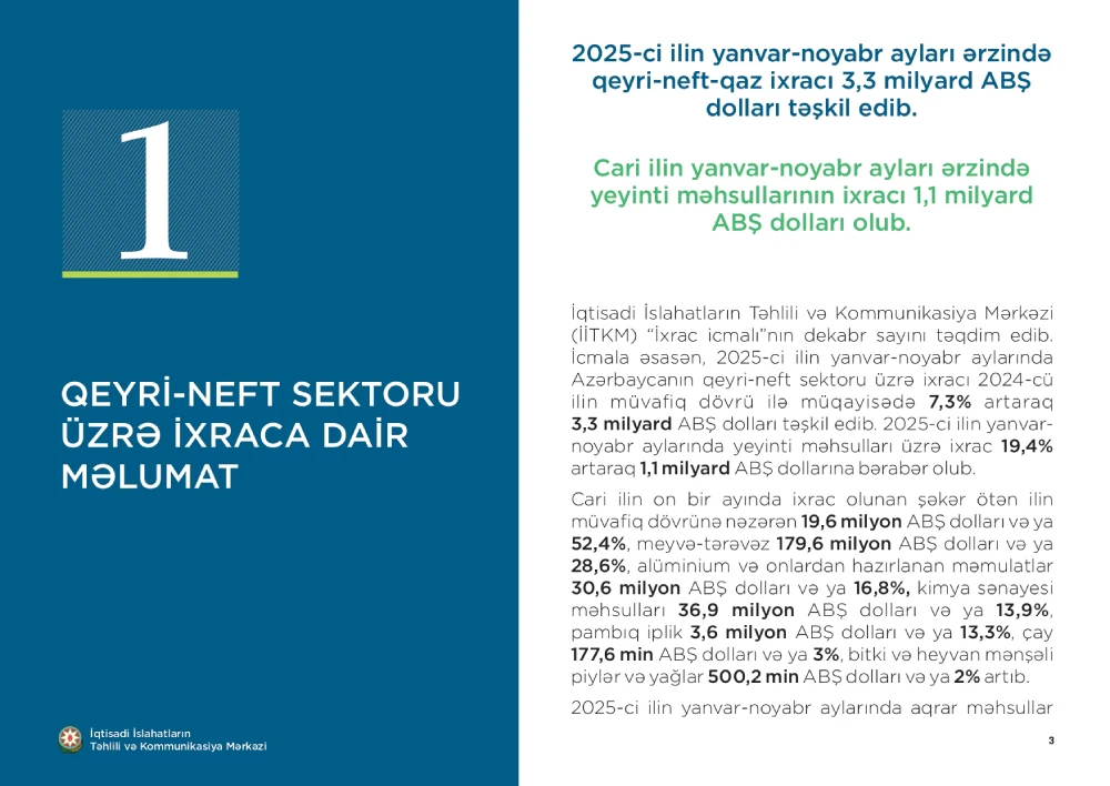 İqtisadi İslahatların Təhlili və Kommunikasiya Mərkəzi (İİTKM) “İxrac icmalı”nın dekabr sayını təqdim edib.