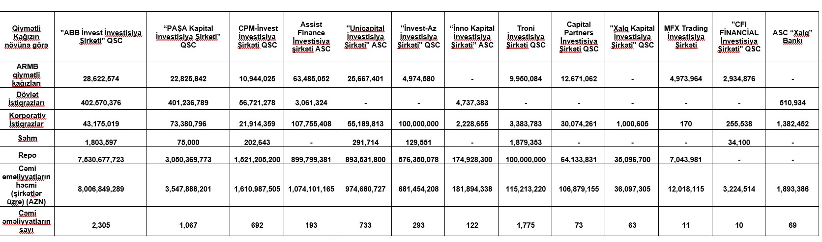 İnvestisiya şirkətlərinin dövriyyələri açıqlandı
