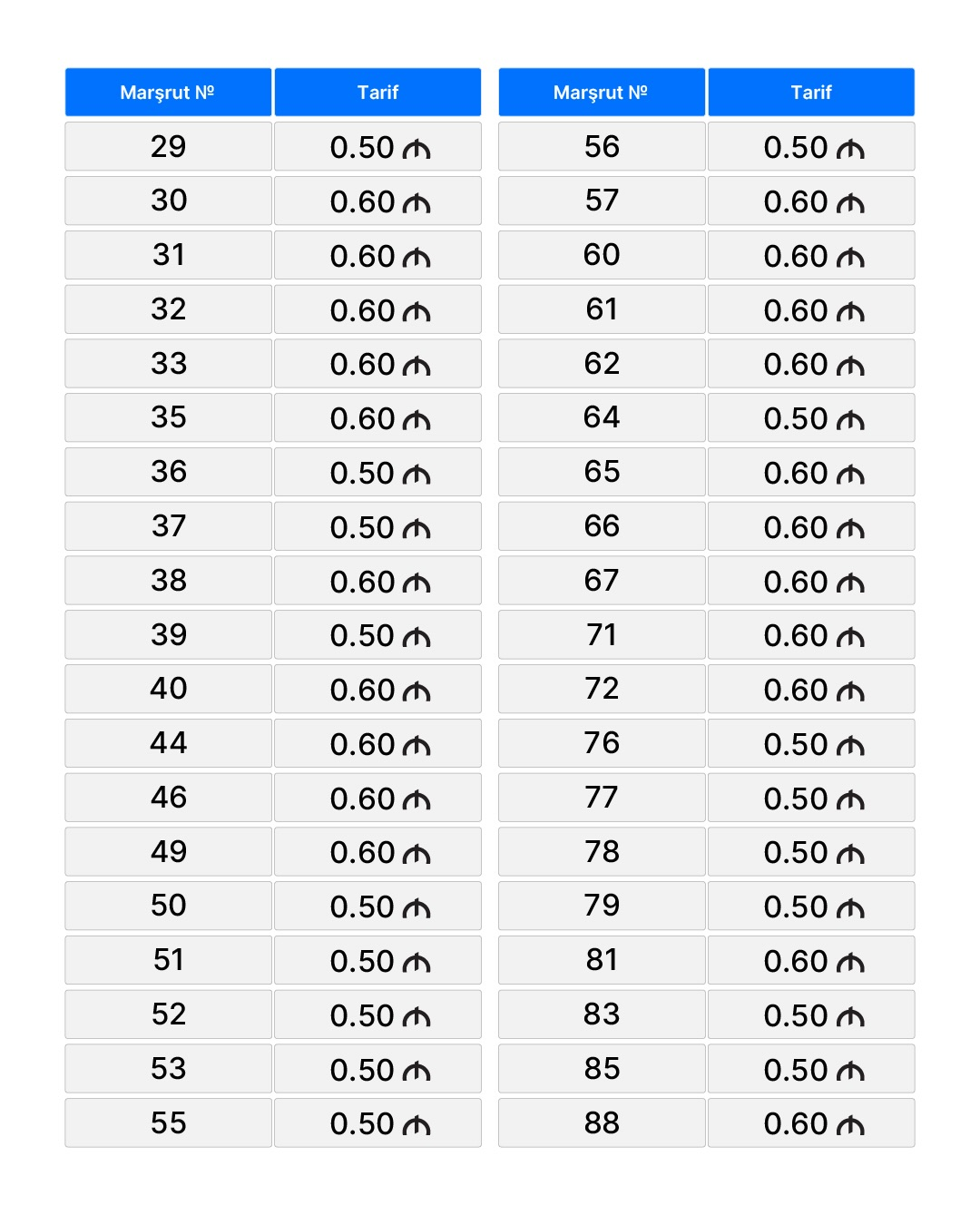 Məlumata əsasən, tarif dəyişikliyi yalnız nağdsız ödəniş sisteminin tətbiq edildiyi və müasir standartlara cavab verən avtobusların istismar edildiyi marşrutlarda həyata keçirilir. Müasir standartlar dedikdə elektrikli, sıxılmış təbii qazla (CNG) işləyən və 2025-ci il istehsalı olan dizel mühərrikli avtobuslar nəzərdə tutulur. Bakıda bu qayda yalnız elektrikli və CNG texnologiyası ilə işləyən avtobuslara şamil edilir.