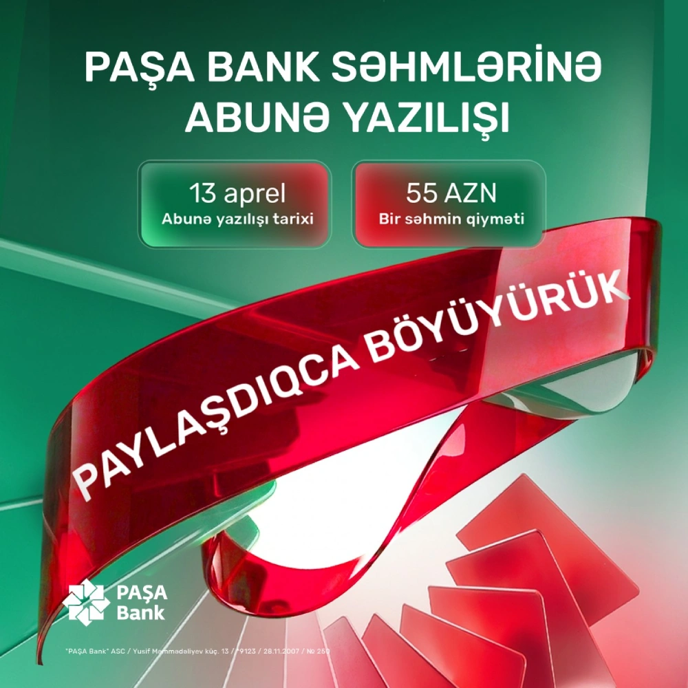 "PAŞA Bank"ın səhmlərini almaq istəyənlərin nəzərinə - 13 Apreldə abunə yazılışı başlayır