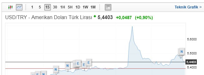 Göstəricilər açıqlandıqdan sonra Dollar/TL məzənnəsi çox dəyişməyib. Bakı vaxtı ilə saat 11:25-də məzənnə 0,9% artımla 5.44 səviyyələrində olub. Məzənnə gecə saatlarında 5.69 səviyyələrinədək yüksəlmişdi.