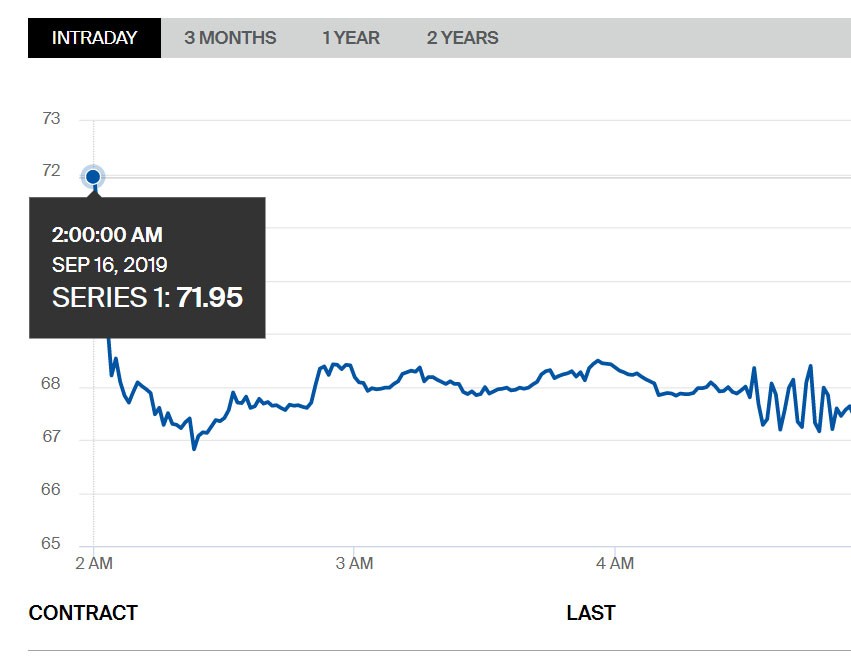ABŞ Prezidenti Donald Tramp, Səudiyyə Ərəbistanına aid neft obyektlərini vuranları bildiklərini və "ehtimal bir hücuma hazır olduqları" mesajını verib. Mesajın ardından Brent neftinin qiyməti 60 dollardan 71 dollara qalxıb.