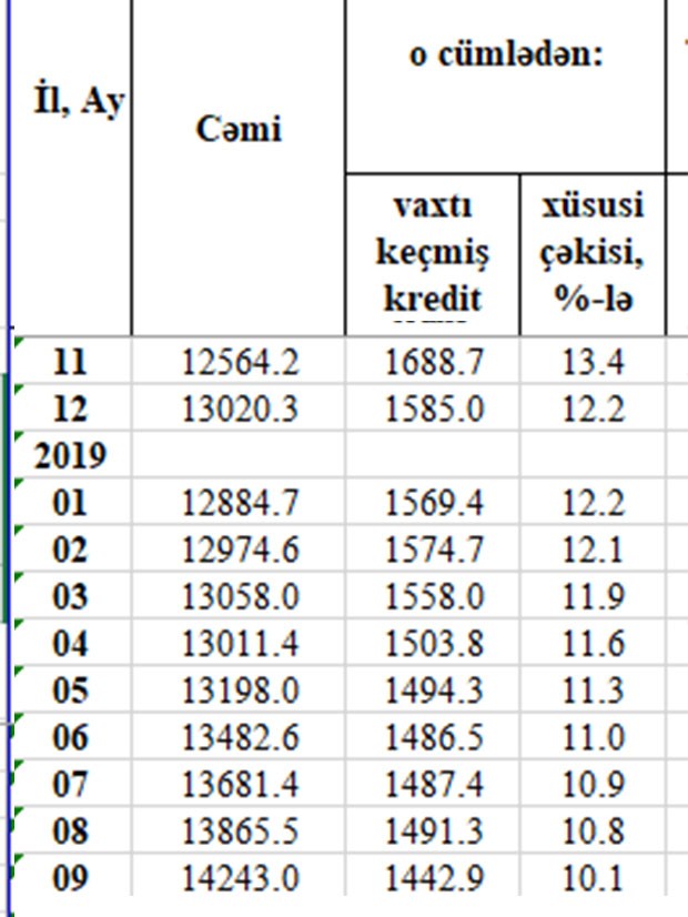 Sentyabr ayında ödəmə vaxtı keçmiş kreditlərin məbləği 48.3 milyon manat azlıb.