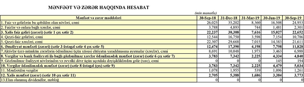 Müqayisə üçün qeyd edək ki, 2018-ci ilin 9 ay ərzində “Yapı Kredi Bank Azərbaycan”ın cəmi gəlirləri 38 milyon 569 min manat, cəmi xərcləri isə 26 milyon 95 min manat təşkil edib. Nəticədə Bankın 12 milyon 474 milyon manat əməliyyat mənfəəti formalaşmışdı. Əməlyyat mənfəətindən 8 milyon 691 min manat ehtiyata ayrılmış və 1 milyon 78 min manat mənfəət vergisi ödənilmişdi. Nəticədə Bankın 2 milyon 705 min manat xalis mənfəəti qalmışdı.