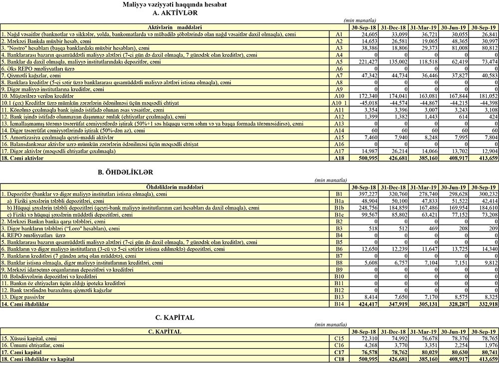 Bankın kapital göstəriciləri kifayət qədər qənaətbəxşdir. Belə ki, ötən ilin müvafiq dövrü ilə müqayisədə bankın I dərəcəli kapitalı 8% artaraq 66.7 milyon manat, məcmu kapitalı 7% artaraq 72,4 milyon manat olmuşdur.