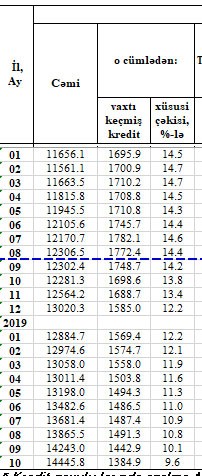Qeyd edək ki, 2017-ci ilin oktyabr atında ödəmə vaxtı keçmiş kreditlərin məbləği 1 milyard 890.3 milyon manata yüksəlmiş, cəmi kredit qoyuluşlarında xüsusi çəkisi 15,5% təşkil etmişdi.