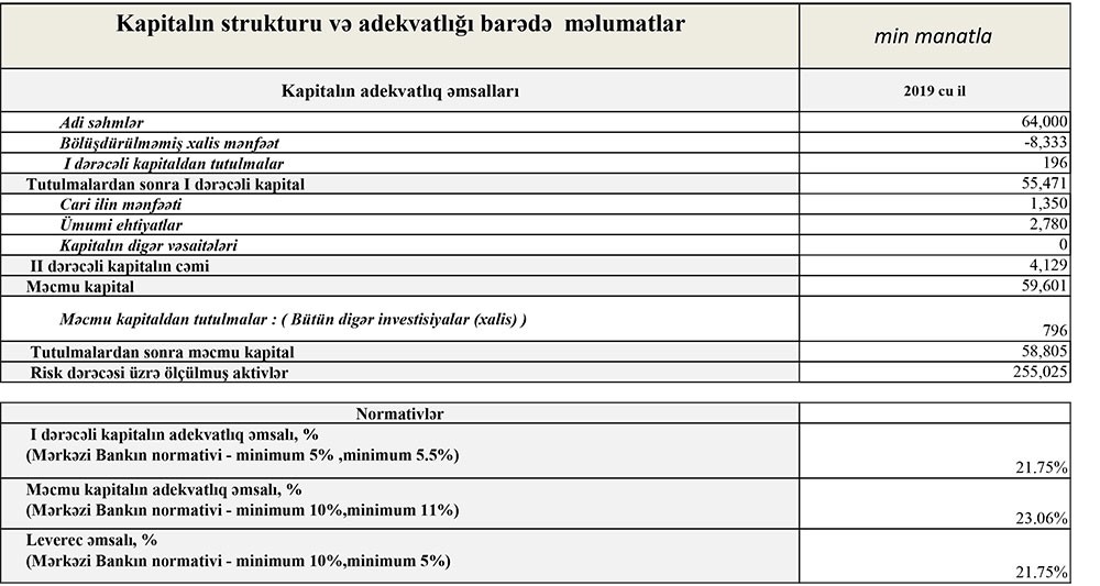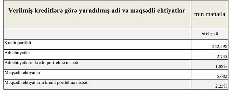 Qısası, ötən il Bankın 23 milyon 998 min manat cəmi gəlirlərinə qarşı cəmi xərcləri 24 milyon 413 min manat təşkil edib. Əvvəlki dövrlərdə aktivlər üzrə mümkün zərərlərin ödənilməsi üçün yaradılmış xüsusi ehtiyatdan 1 milyon 764 min manatın azad olması xərclərin gəlirləri 415 min manat üstələməsini bağlayıb və nəticədə Bank ötən ili 1 milyon 350 min manat xalis mənfəət ilə başa vurub. Yaradılmış ehtiyatın azad olması Bankın gecikmədə olan kreditlərinin azaldığına işarədir.