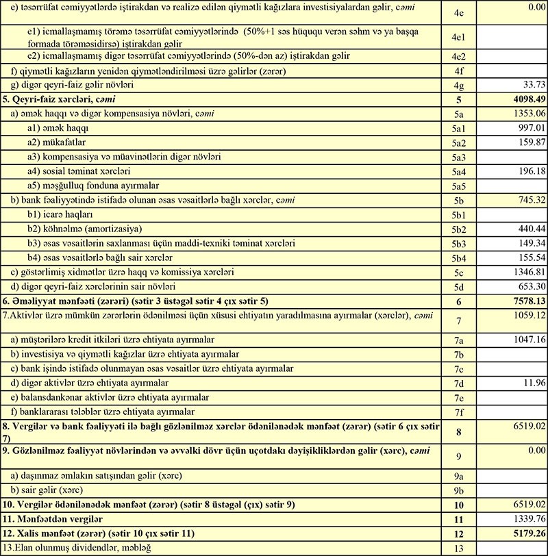 2018-ci illə müqayisədə 2019-cu ildə əməliyyat mənfəətinin artmasına baxmayaraq xalis mənfəətinin azalması Bankın aktivlər üzrə mümkün zərərlərin ödənilməsi üçün xüsusi ehtiyatın yaradılmasına ayırmalarının 10 dəfəyə yaxın artması ilə əlaqədardır. 2018-ci ildə cəmi 110 min manat olmuş ayırma 2019-cu ildə 1 milyon 59 min manat təşkil edib. Daha çox ayırma ödəmə vaxtı keçmiş kreditlərin artdığına işarədir.