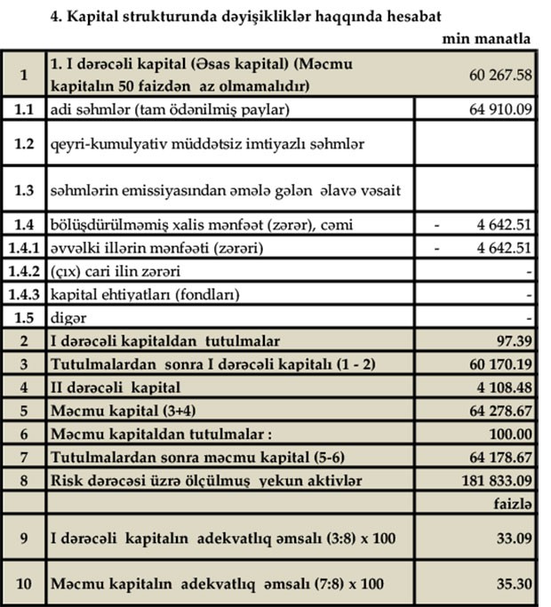 31 Dekabr 2019-cu il tarixində “GünayBank” 64 milyon 279 min manat məcmu kapitala malik olub.