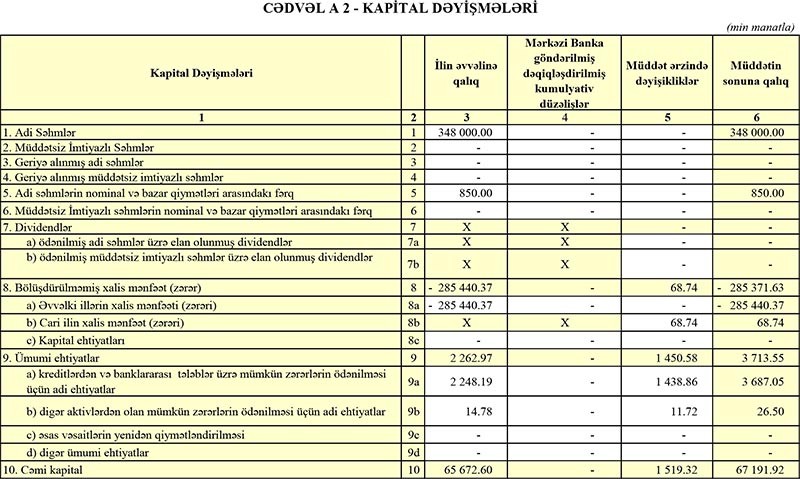 Müqayisə üçün qeyd edək ki, “Yelo Bank” 2018-ci ildə ildə 36 milyon 955 min manat əməliyyat mənfəəti əldə etməsilə bərabər, Aktivlər üzrə mümkün zərərlərin ödənilməsi üçün xüsusi ehtiyatın yaradılmasına 172 milyon 156 min manatın ayırdığından 135 milyon 200 min manat zərərə düşmüşdü.