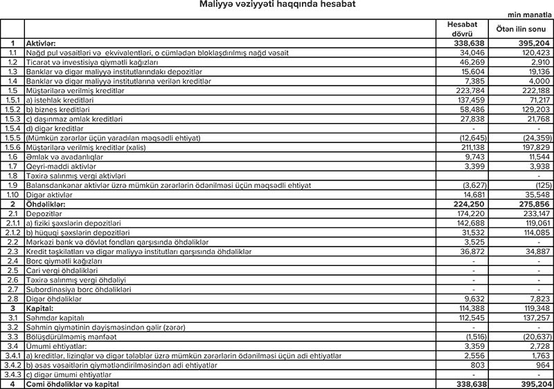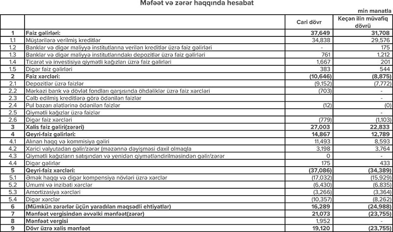 Bu bank 20 milyon manata yaxın xalis mənfəət açıqladı