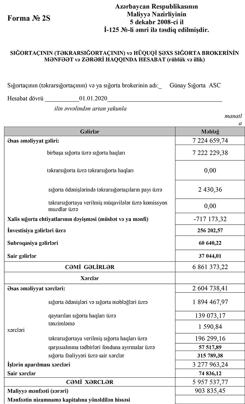Ötən il "Günay Sığorta"nın tələblərə uğun olaraq topladığı sığorta haqlarının bir hissəsini ehtiyat yönəltdiyindən cəmi gəlirlər illik müqayisədə azalıb.
