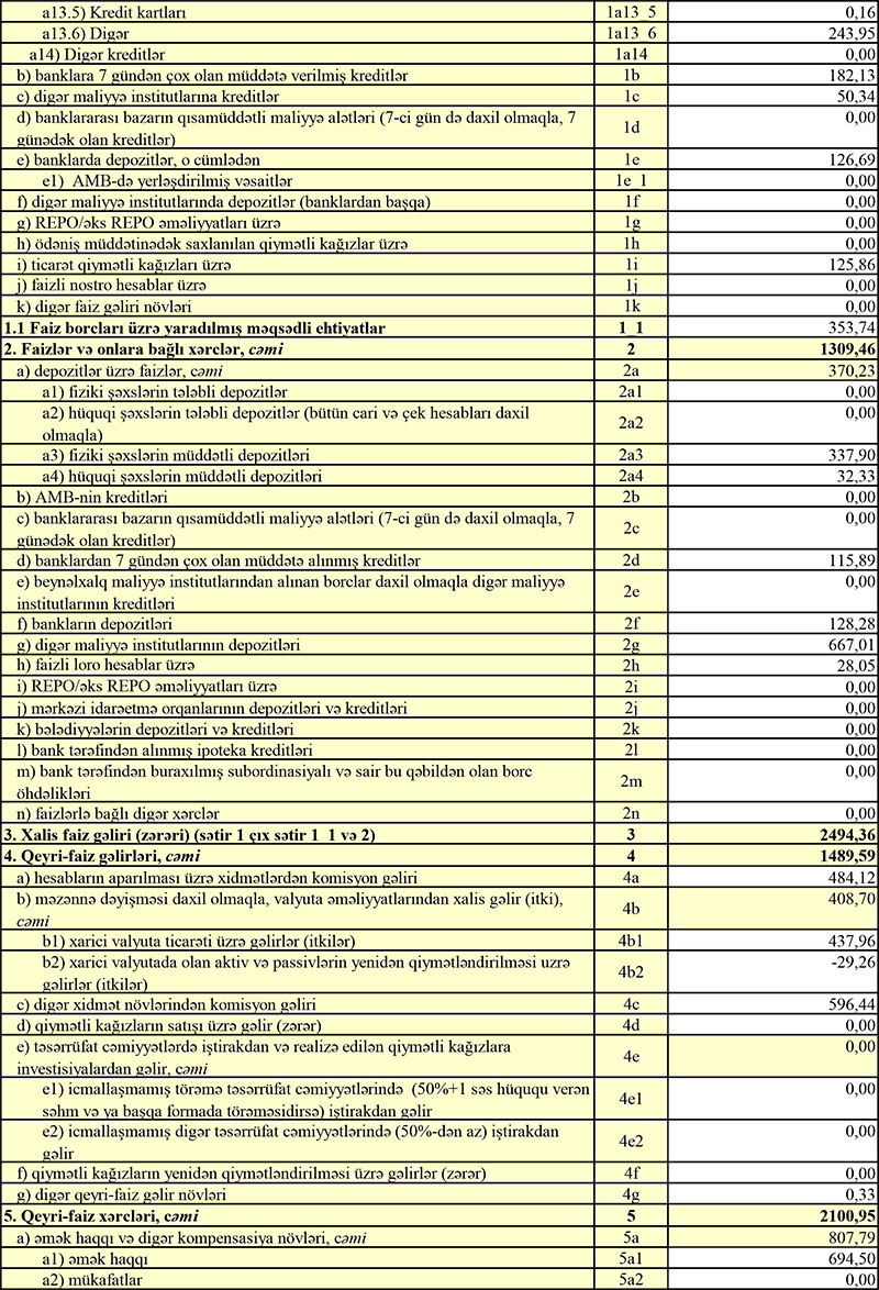 ARTIM QEYRİ-FAİZ GƏLİRLƏRİNİN HESABINADIR