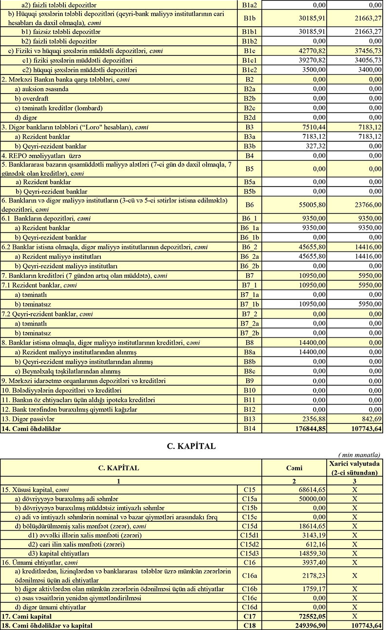 Ötən ilin sonu ilə müqayisədə Bankın depozit portfeli 980 min manat və ya 1,1% artarq 86 milyon 621 min manata yüksəlib.