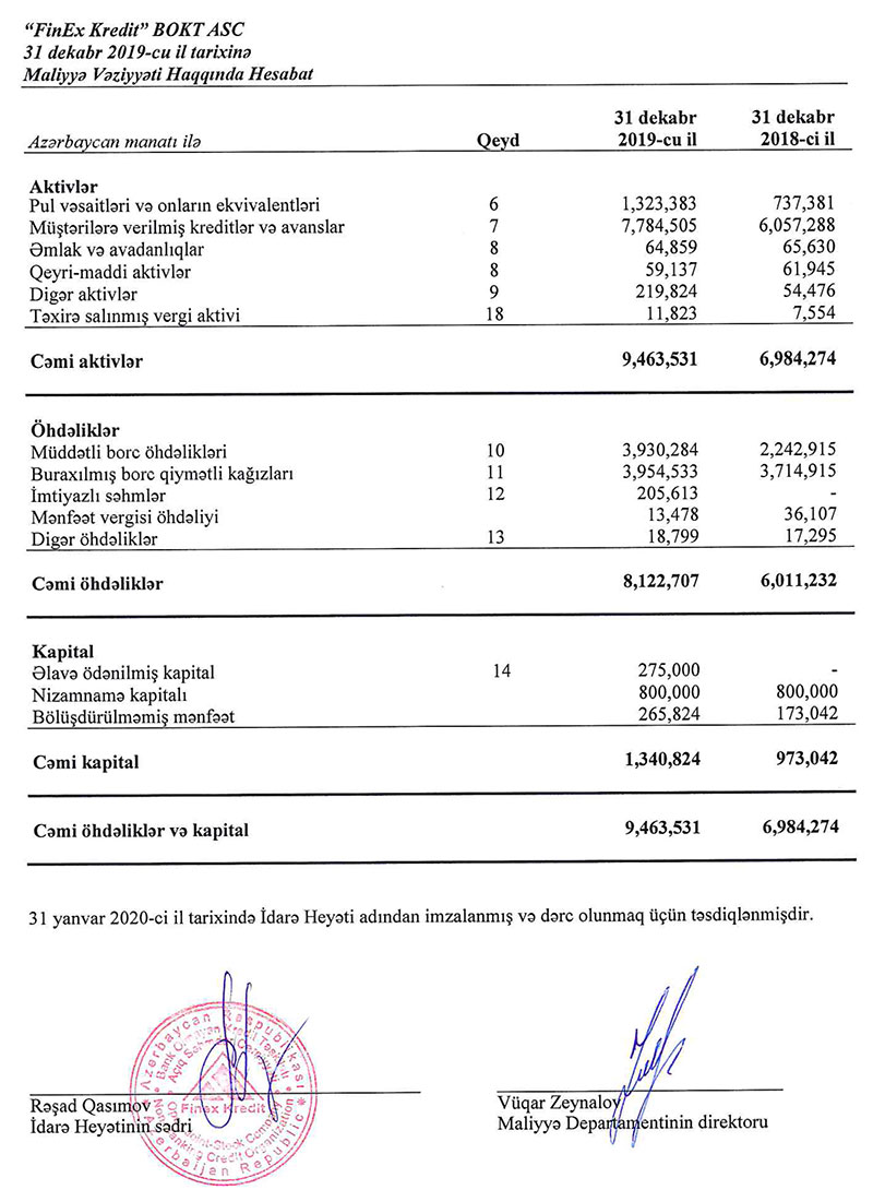 “Finex Kredit” ASC bank olmayan kredit təşkilatı (BOKT) 2019-cu ili 271 min manat xalis mənfəətlə başa vurub.