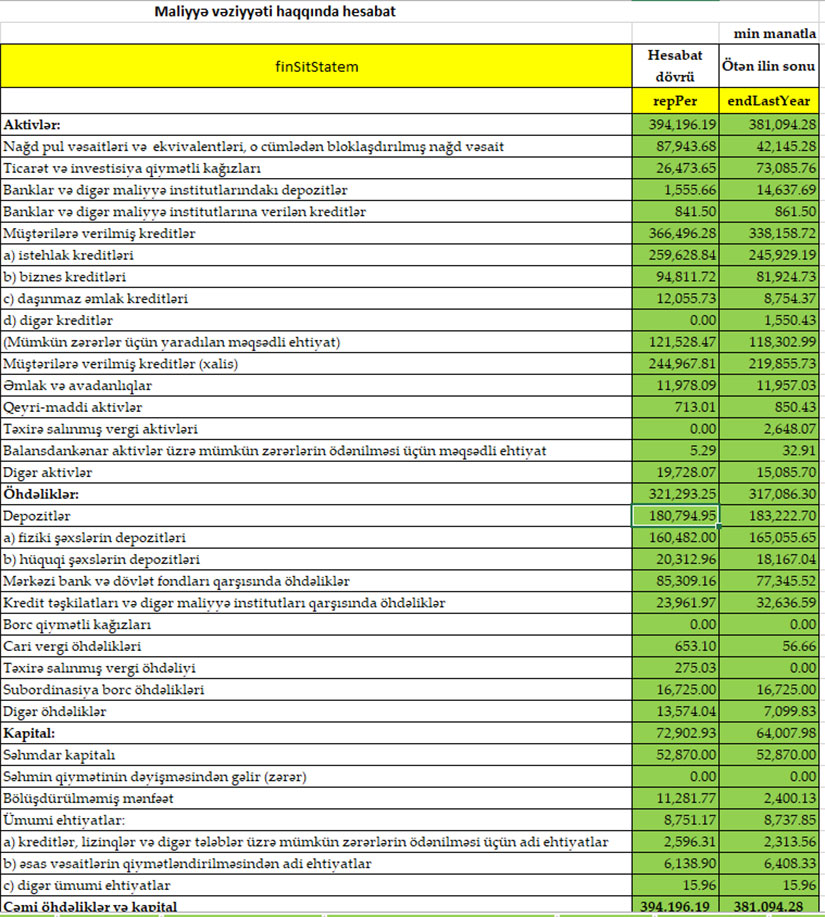 BANK BÖYÜYÜB, MÜŞTƏRİLƏRƏ VERİLMİŞ KREDİTLƏR ARTIB