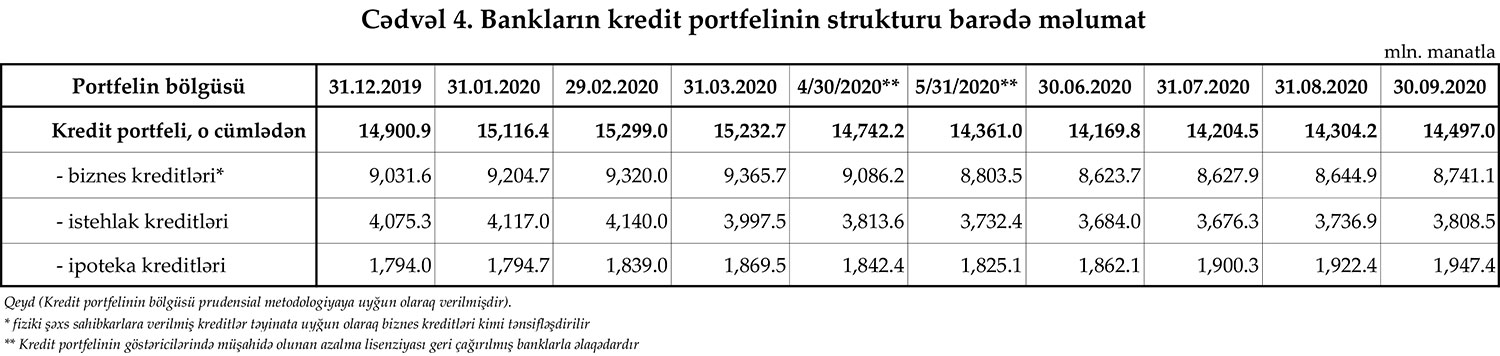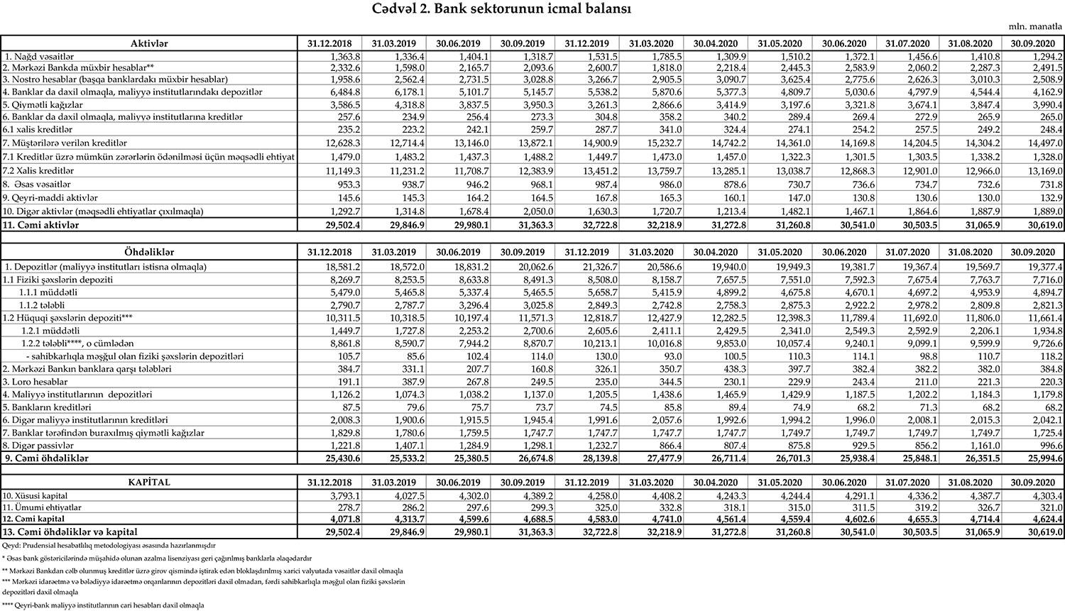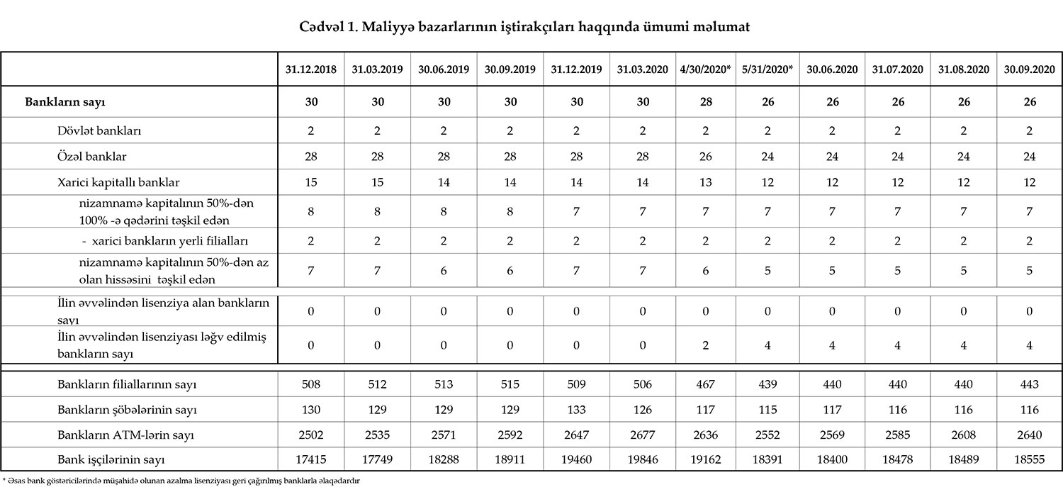 30 sentyabr 2020-ci il tarixinə olan bank sektorunun əsas göstəriciləri.