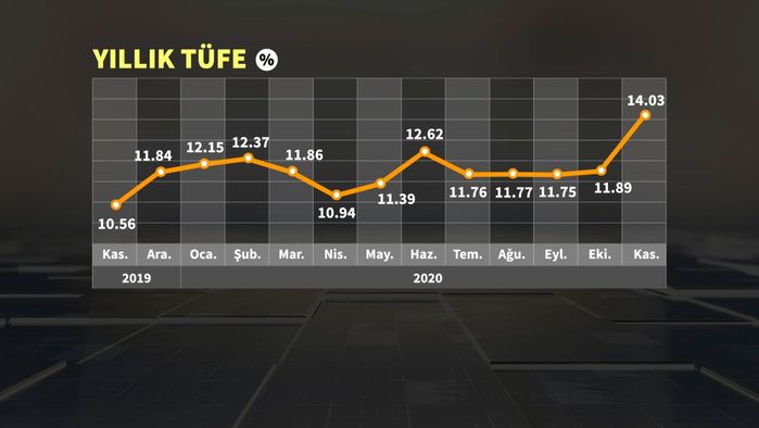 Türkiyədə son 12 ayda qiymətlər orta hesabla 14,03%, ərzaq qiymətləri isə 21,08% artıbTürkiyə Statistika Komitəsinin açıqladığı məlumatlara görə, istehlakçı qiymətləri indeksi (inflyasiya) Noyabrda ötən ilin eyni dövrü ilə müqayisədə 14,03% artım qeyd edib. Aylıq müqayisədə artım isə 2,3% olub.