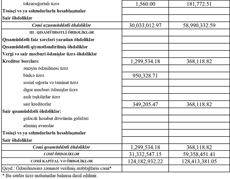 Ötən il ehtiyata 28 milyon 388 min 639 manatın ayrılması şirkətin cəmi əməliyyat gəlirlərini azaltmış, sığorta ödənişlərinin artması isə cəmi əməliyyat xərclərini yüksəltmişdir.