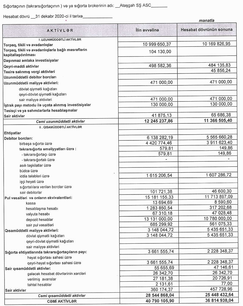Marja şirkətin maliyyə heabatlarına istinadən xəbər verir ki, “Atəşgah” Sığorta Şirkətinin 2019-cu ildə 39 milyon 48 min manat təşkil etmiş cəmi gəlirləri 2020-ci ildə 32 milyon 661 min manata geriləyib (6 milyon 387 min manat və ya 16,3% azalıb). Şirkətin cəmi xərcləri isə 37 milyon 576 min manatdan 28 milyon 696 min manata düşüb (8 milyon 879 min manat və ya 23,6% azalıb).