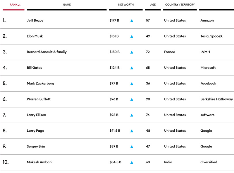 Forbes tərəfindən hazırlanmış siyahıda sərvəti 1 milyard dolları aşanların cəmi sərvətlərinin 8 trilyon dollardan13,1 trilyon dollara qalxdığı bildirilib. Siyahıdakı milyarderlərin sərvəti bir il ərzində 60%-dən çox artaraq 8 trilyon dollardan 13,1 trilyon dollara yüksəlib.