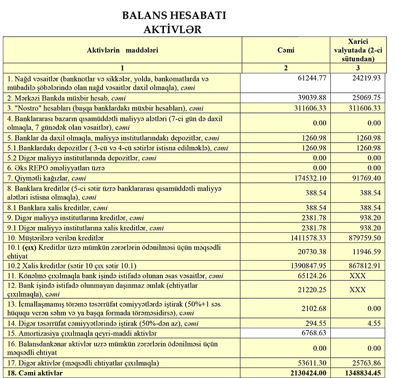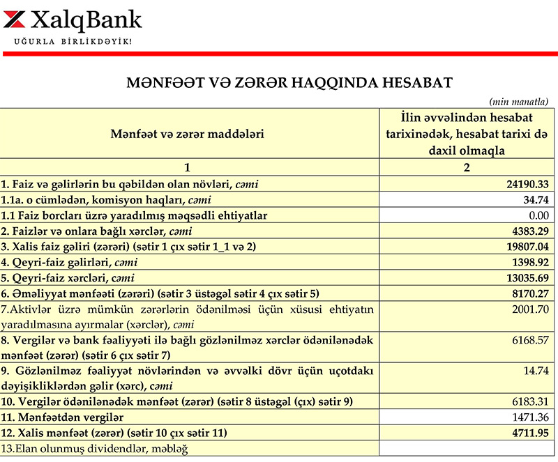 Bank 2021-ci ilin ilk rübü ərzində 4,7 milyon manat xalis mənfəət əldə edib.