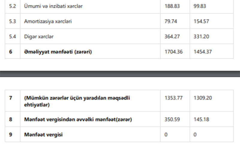 Müqayisə üçün qeyd edək ki, 2020-ci ilin yanvar-mart dövründə “Bank Avrasiya”nın cəmi əməliyyat gəlirləri 3 milyon 100 min manat, cəmi əməliyyat xərcləri 1 milyon 646 min manat, əməliyyat mənfəəti 1 milyon 454 min manat təşkil etmişdi. Bank əməliyyat mənfəətindən 1 milyon 309 min manat mümkün zərərlər üçün yaradılan məqsədli ehtiyatlara ayırdığından ötən ilin ilk rübünü 145 min manat xalis mənfəət ilə bağlamışdı.