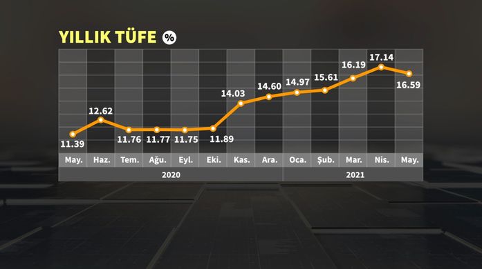 May ayında Türkiyədə inflyasiya 16,59% təşkil edib.Türkiyə Statistika Komitəsi (TÜİK) 17 günündə tam bağlanma (sərt karantin) tədbirlərinin tətbiq olunduğu May ayına dair inflyasiya məlumatlarını açıqlayıb.