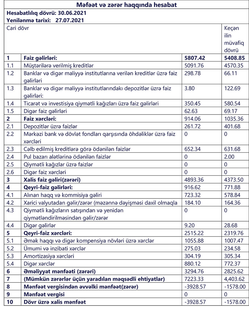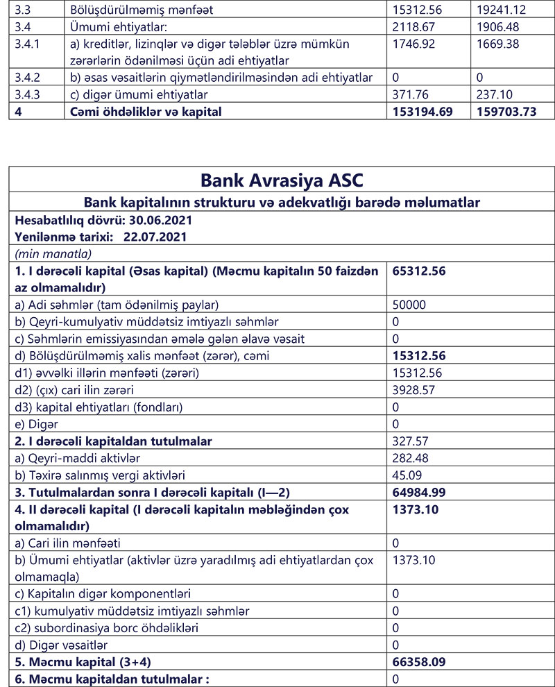"Bank Avrasiya" ASC 2021-ci ilin yanvar-iyun dövrü üzrə maliyyə göstəricilərini açıqlayıb.