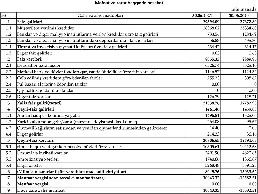 Müqayisə üçün qeyd edək ki, 2020-ci ilin yanvar-iyun dövründə Yelo Bankın cəmi əməliyyat gəlirləri 29 milyon 133 min maant, cəmi əməliyyat xərcləri 29 milyon 682 min manat, xərclər gəlirləri üstələdiyindən əməliyyat zərəri 549 min manat təşkil etmişdi. Mümkün zərərlər üçün yaradılan məqsədli ehtiyatlara 13 milyon 33 min manat ayrıldığından Bank həmin dövrü 13 milyon 583 min manat xalis zərər ilə bağlamışdı.