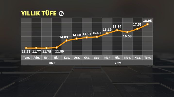 Türkiyədə iyul ayında illik inflyasiya 18,95% təşkil edib, bu, 26 ayın ən yüksək səviyyəsidir (2003-cü ildən bu yana). 2003-cü ildə 23,59% inflyasiya qeyd alınmışdı.