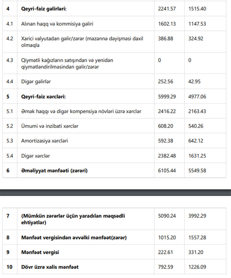 Gəlirləri artması ilə əlaqədar olaraq ötən il Bankın əməliyyat mənfəəti 556 min manat və ya 10% artaraq 6 milyon 105 min manat təşkil edib. 2020-ci ildə Bankın əməliyyat mənfəəti 5 milyon 550 min manat təşkil etmişdi.