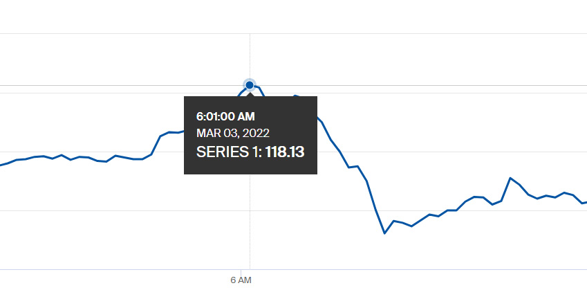 Brent markalı neftin qiyməti 2013-cü ilin avqustundan bəri ilk dəfə bir barel üçün 117 dolları keçib.Rusiya-Ukrayna müharibəsi səbəbindən neftin qiymətlərinin yüksəlməsi davam edir