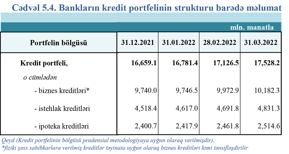 31 mart 2022-ci il tarixinə olan bank sektorunun əsas göstəriciləri açıqlanıb.
