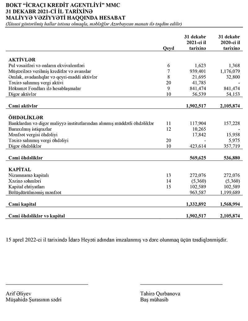 Xalis zərər kredit itkiləri üzrə ehtiyata ayırma ilə əlaqədardır. 2020-ci ildə ehtiyata 762 min 552 manat, 2021-ci ildə isə 237 min 881 manat ayrılıb.