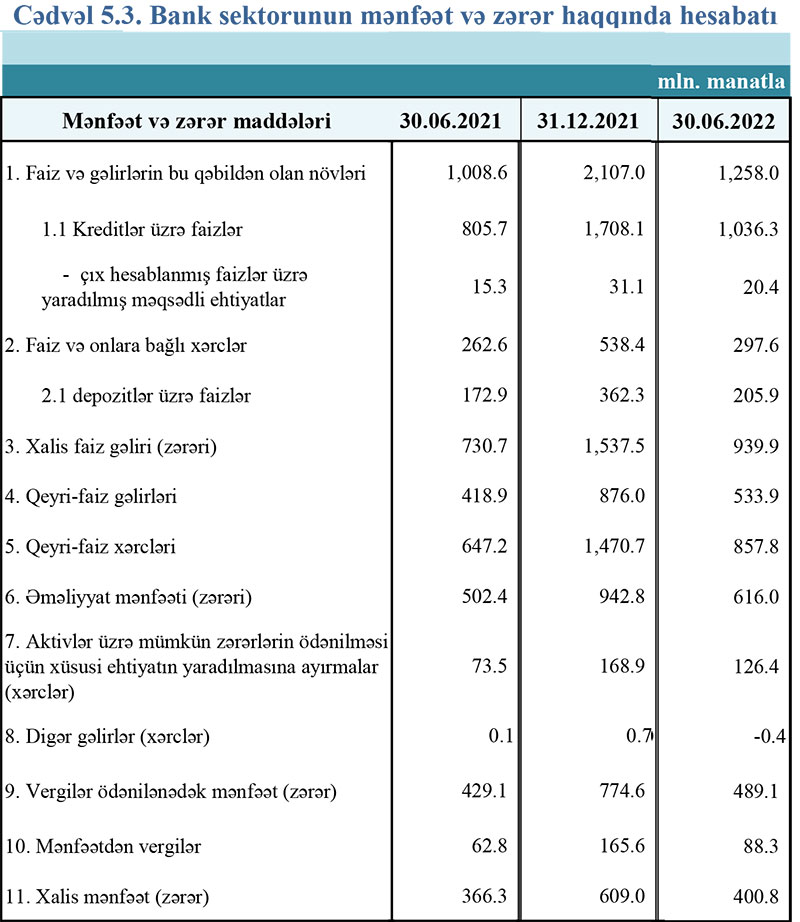 Azərbaycanın bank sektoru 2022-ci ilin 1-ci yarısını 400,8 milyon manat xalis mənfəət ilə başa vurub.
