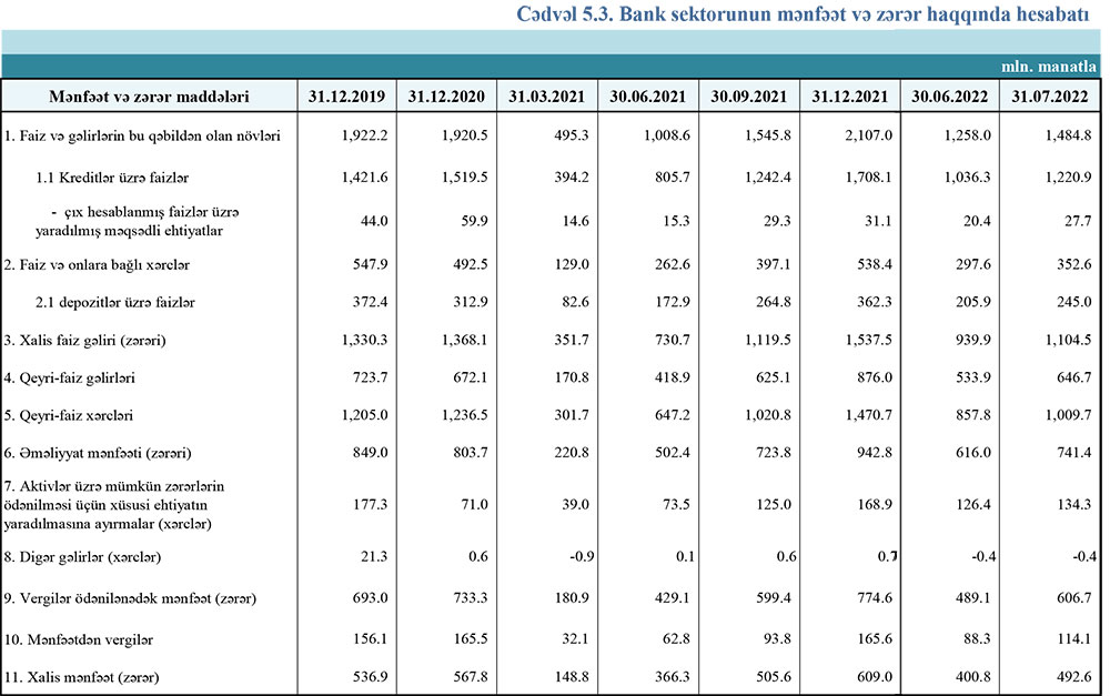 31 iyul 2022-ci il tarixinə olan bank sektorunun əsas göstəriciləri açıqlanıb.