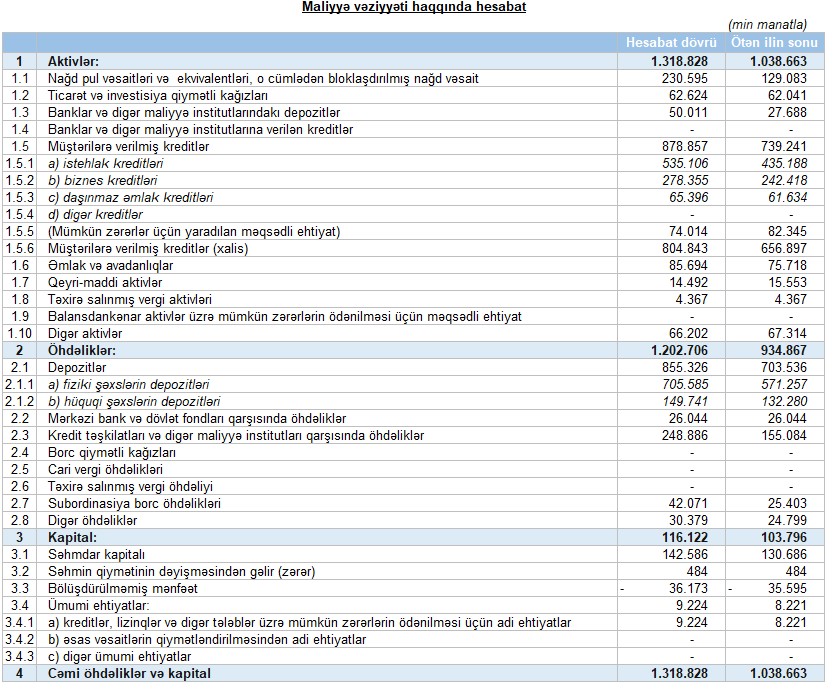 “Unibank”ın aktivlərinın həcmi ilin əvvəli ilə müqayisədə 27% artaraq, 1 milyard 319 milyon manata çatıb. Cari dövrdə bankın əməliyyat mənfəət göstəricisi 16 milyon manat təşkil edib.
